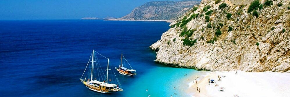Between Kas and Kalkan sits the beautiful cove of Kapoutas beach. This cove is pictured a lot in national and private tourism advertising printed brochures and online magazine. This is where beauty and the beast meet up and become on, the beach itself is not recommended for families with children since it is quite deep, and the waters tend to be rough most of the time.