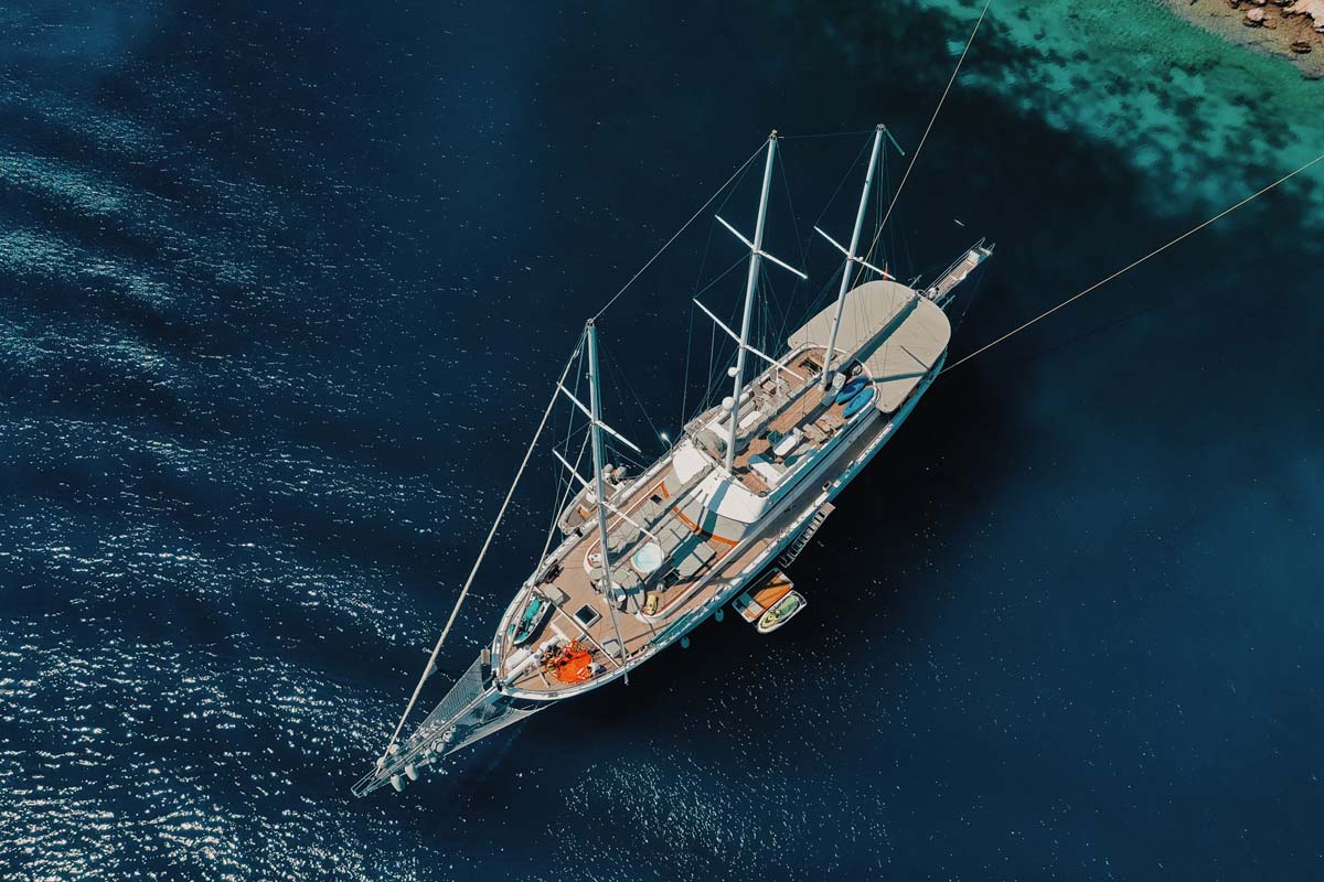 A gulet is a traditional wooden sailing vessel originating from Turkey, characterized by its two-masted or three-masted design. These yachts are popular for their spacious decks, comfortable and luxurious accommodations, and the traditional sailing experience they offer.